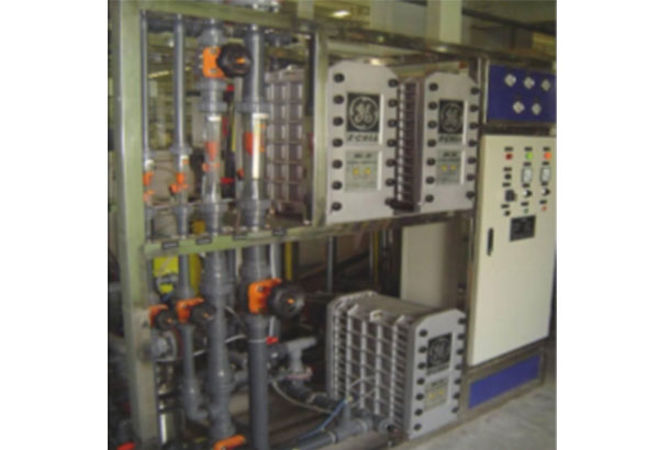 4.預處理→反滲透→中間水箱→水泵→EDI裝置→純水水箱→純水泵→紫外線******器→0.2或0.5μm精密過濾器→水對象(≥15mΩ)。Cm)。